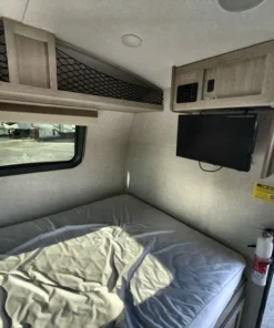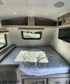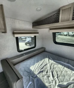 Storage solutions abound in this RV, from overhead compartments to under-bed storage. Keep your gear organized and accessible during your travels.