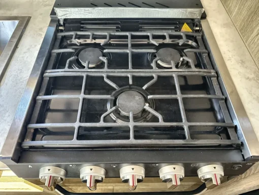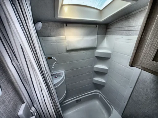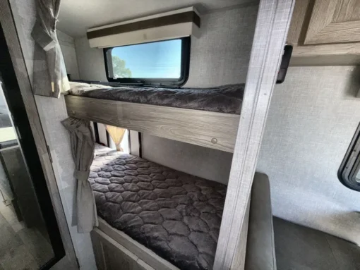 Inside, you’ll find ample sleeping space with a versatile bunk layout. This feature accommodates families or friends traveling together without sacrificing comfort.