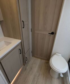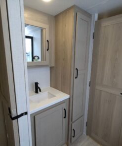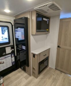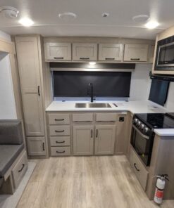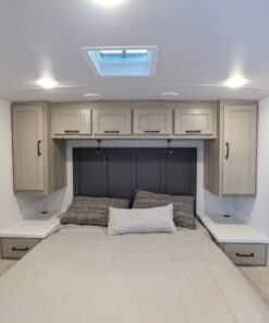 Equipped with ample storage options, this travel trailer ensures you can bring along all your essentials and more. The cozy sleeping areas provide restful nights after a day of adventure.