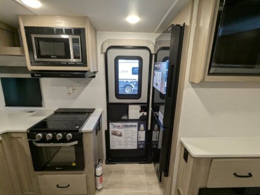 Equipped with energy efficient appliances and advanced technology, the Mini Lite makes camping easier than ever. You’ll find everything from spacious sleeping areas to functional kitchen setups nestled within its sleek design.