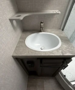 Ample storage solutions throughout the camper make sure everything has its place, keeping your traveling experience organized and stress free.