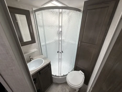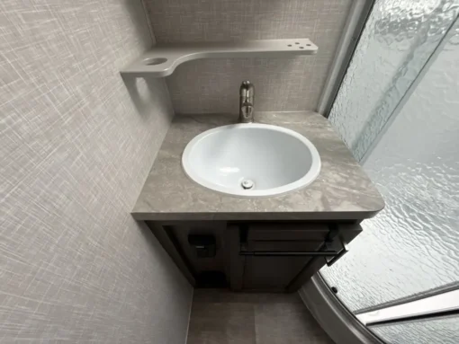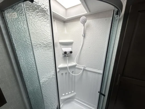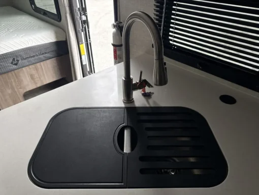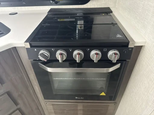 Ample storage solutions throughout the camper make sure everything has its place, keeping your traveling experience organized and stress free.