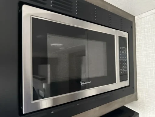 The kitchens in Rockwood models typically feature modern appliances like a refrigerator, microwave, and sometimes even an oven. Plenty of counter space allows for meal prep on the go.